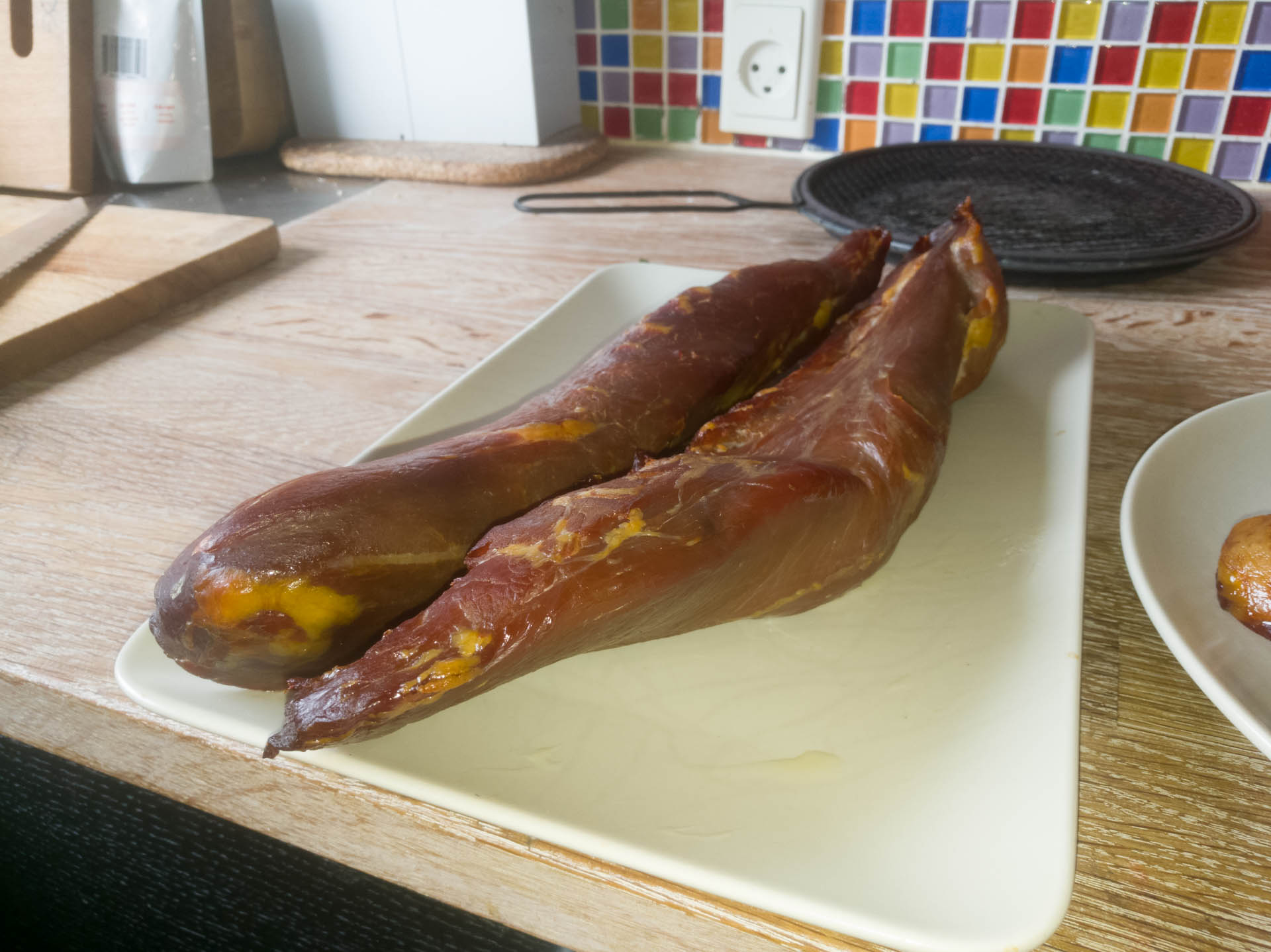 Det er noget af det mest luksuriøse pålæg man kan få, men kan også bruges som tapas eller fx i en omelet eller en salat. Jeg tilbereder ikke mørbraden yderligere. Hvis noget røget skal steges og være sprødt, så er det baconen, der kommer i spil.